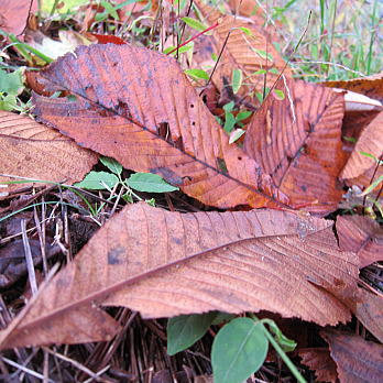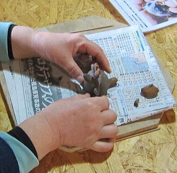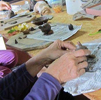 2日目 落葉拾い 〜 木の葉皿作り 〜 たたら紙芝居 〜 囲炉裏カフェ 〜 もりみん作り 〜 セラピー弁当 〜 三段峡水梨セラピーロード