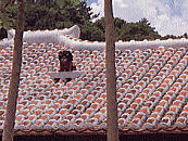屋根職人は仕事の最後の仕上げに、割れた瓦を利用して、漆喰で固めたシーサーを作ります。