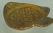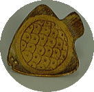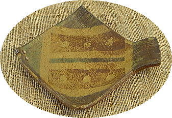 ![]() これ、ひらめに見えますか? 魚には見えますよね。 ケーキ皿に丁度いい、大きさ。 板づくりで作ってます。 ウロコは、線彫り。ヒレはくし目。 表面の細かいザラツキが、渋い、灰釉の色を 独特の風合いを、醸しだしておりまする。 |