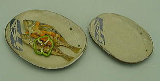 B−038 魚紋白楕円皿 大¥2,400 小¥1,800