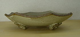 タタラ(板)づくりですが、厚さが6mmありますので、しっかりと丈夫。 適度な深さがありますので、煮物・中華などの惣菜にも適します。 |