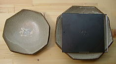 ■ 風炎オヤジのつぶやき ■ 八角は何となく、中華のイメ〜ジがあります。 中国3000年の歴史に培われた器の、緻密な技巧には感服いたします。 中途半端な陶芸家に、真似できるものではありまへん! 適当に歪んだ形とデザイン・・・ それは風炎オヤジの、いいかげんさなのですが・・・ 魚の目や、縁のギザギザは、繊細なりけり。 う〜ん! そこが一味なのですが・・・ 貴方の料理の一味に支えられて、その世界は完結するのだ! DOMO |