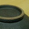 ☆茶魚紋は、大胆に赤土を表して、青土や白土で、勢いのある魚です。 ☆青魚紋は、大口開けた怪魚で、繊細な線彫りで書いています。 ![]() 内径が16cmありますので、饅頭5個くらいは、余裕で入りますし、 冷菓の場合、蓋して、そのまま冷蔵庫で冷やしますと、美味です! ![]() 真横からの形ですが、端正な形で御座います! ![]() 上から、CDケースを載せておりますので、大きさの参考にしてください。 胴は無地で、艶消の黒釉薬ですが、 縁の部分は、釉薬の掛かっておりませんので赤土色です。 |