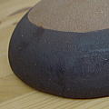 側面と縁は艶消しの黒い釉薬で塗り分けてあり、 平らな底は、薄茶色の土の素材の色です。