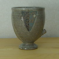 コロコロ並んだ、大口魚紋のカップ達・・・![]() 高台のついたタンブラー型の陶器カップはよくある。 されど、腰脇に飾りのポッチがある・・・ 握ってみれば、指に掛かり持ち易い・・・ 可愛くて、機能的でもある。 コーヒー、御茶、ビール、ジュース・・・ 何でも似合うのだ!