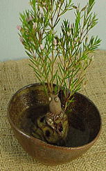 ![]() 小鉢と土剣山のセットで、小さくてかわいい花生です。 小鉢の内側は、渋いグリーン色で 所々に小さな、くし目がある。 外は茶色。 ふちを2ヶ所、切って張り合わせて、楕円になっています。 全体に渋い雰囲気ですから、野の花がお似合い! きれいな花ね。 かわいいね。 ふと気が付くと、草の影から 小さなフクロウ、こんにちわ! う〜ん ニクイ演出だすな! |