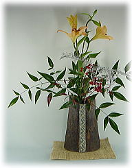 ![]() モミ肌は土に籾殻を混ぜ合わせ、表面に貼り付けました。 黒釉をすりこんで、独特の肌を呈しています。 一見、鉄器のような雰囲気です。 沖縄の古い厨子甕に籾殻の痕跡を見ることができます。 焼成時の割れ防止の意味合いが強いのですが 妙に気に入っていました。 活けやすい大きさ、口です。 和風でも、洋風でも、似合うから、あら不思議! 花も美しく映えるざんす。 |