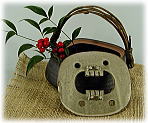 艶消しの黒釉薬に、銅釉薬で線模様。