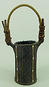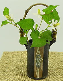 ![]() 小振りで、カズラを巻いた花器! さりげない野の花、雑草が、お似合い! 板作りで、クルッと巻いて作ります。 魚紋は、スポイト、象嵌、線彫り・・・ 結構、コダワッテいるのです。 カズラは、山から冬の時期、採取します。 工房の屋根裏に干しております。 一晩、水に漬け、柔らかくして巻きますが 結構、力が必要です。 高さ19cmで、小振りで可愛い! 4種類ありますので お好みを、御選びください! |