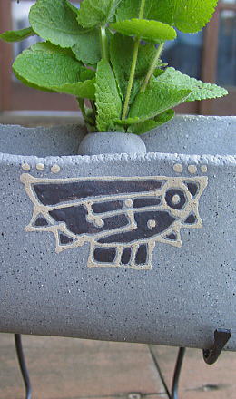 ![]() 掛け花生と金属スタンドのコラボ! 壁に掛けても置いてもOK! 陶器の御影石のような肌合に、 ひょうきんな魚のデザインがお洒落な感じ・・・ 金属部分はバーナーで焼いて、トンカチで叩いて、さらに腐食させていますので、 使い込んだ風合い・・・ 貴方ならどう使う?