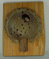 ![]() 森に、まあるい木が一本! よく見ると、フクロウさんがいるみたい。 メルヘンチックなフォルムだすなあ。 中国山地のケヤキの板は、 1.5cm程の厚さがあります。ステイン仕上げ。 幹は椿の丸太です。 裏から板を、くり抜いて、ランプになっています。 10Wのホタル球、白2mコード、中間スイッチ付。 壁掛け金具付。 |