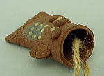 粘土の板を指先で、クルット巻いて、ヒレ、目玉を付けました。