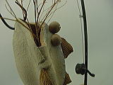 | ■ 風炎オヤジのつぶやき ■ 最近は、コラボレーションという言葉を、よく耳にしますね! 違った才能や素材が合体して、新しい価値を生み出すという事でしょうか・・・ 単体のさかなつり花器は、10年来の定番作品ですが、ついにここまで、進化したのだ! ラフスケッチをFAXして、佐藤工房さんに製作依頼をしております。 手作り陶器と同じで、製作のたび、微妙に違うのですが、いい味でがんす! DOMO |