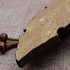 コートの襟、少し立てたら・・・ 季節がまたひとつ、駆け出してゆく・・・ 貴方の胸元には・・・ きれい、きれいな花よりも・・・ さり気ない土の色・・・ 枯葉舞う、秋なのね! ![]() アースカラーで、シックに、さり気なく・・・ 貴方の胸元を彩る、首飾り。 違う色の粘土を組み合わせた、練り込み技法。 さらには、白土のスポイトの斑点があり、裏は艶消しの黒釉薬です。 黒いウッドビーズに、ムラ染めのロウ紐をあしらっております。