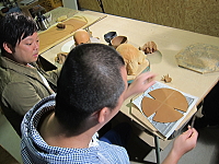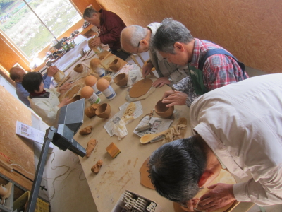 板状の粘土と伏せ型を使うので、初めての方でも軽い茶碗が作れる。 |