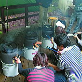 □ 小だたら操業・ダッチオーブン 聖湖はダム湖ですが、周辺には石器時代や縄文時代の発掘品が出土しており、 アイヌ語を彷彿とさせる地名も残っています。 また江戸期には「たたら製鉄」の一大産地として栄えていたのが夢のようですが、 美しい湖や湿原に歴史のカケラが静かに眠っているのです。 今回、出雲歴史村地域振興財団による小だたら操業ワークショップで「たたらの火」が復活・・・ 雄大な時の流れの中で、小さな記念日となりました。 アウトドアでの五右衛門風呂やダッチオーブンも楽しい・・・ ツーリズムの形態が変わってゆく時代のなかで新たな価値を探ってゆきたいものですね。 太田川の水運で発達した中流域の鋳物・・・ 産業機械・造船・車・針など、広島で発展したモノツクリ産業の源流は「たたら製鉄」なのです。 小さなイベントに隠れた歴史ロマンを体感してみよう。 □ 林 俊一 (太田川アクティブアーチ代表) |