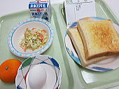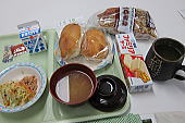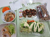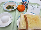 病院のカロリー制限食から、 パンやご飯の主食を抜いて、 副菜を追加変更した糖質制限食を実施。 食材は持参、院内のコンビニ、 近隣のスーパーなどで調達しました。 以下、主な変更食材です。 |