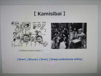 ![]() 【紙芝居】 その昔、まだTVが無かった頃の子どもたちの楽しみが「紙芝居」でした。 10枚程度の絵を使った演劇は珍しく、日本アニメーションの基盤となるものです。 今回は、パワーポイントを使っています。 In the old days , it was fun for the children to look at Kamishibai instead of the TV shows. It is unique in being composed of about 10 pictures, and this is the foundation of the Japanese animation . This time you can look Kamishibai at this screen. |