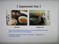 ![]() 【 Japanese tea 】 お茶は中国から伝わり、上流社会に広がりました。 日本では「抹茶」が進化した一方で、「番茶」が庶民のお茶として楽しまれています。 Japanese tea is transmitted from China , has spread to the high society . While a recent boom " green tea " evolved , " crop " has been enjoyed as a tea of the common people . |