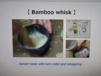 ![]() 【 Bamboo whisk 】 茶筅を振って泡立てることで、味や香りが変化することを体験しましょう。 By bubbling waving Chasen , let's make sure that a change in taste and smell . |