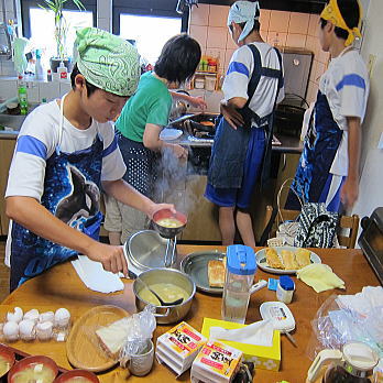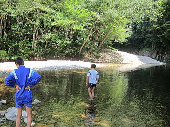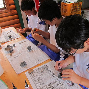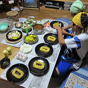 | 「三段峡たたらの森の仲間たち」 2012年8月9・10日 実施 三原市立第二中学校 3名 陶芸家民泊 トライアルツアー行程 9日 14:00〜 川・森・文化・交流センター集合 のち 入村式 15:00〜 鍛冶屋見学 15:30〜 風炎窯で陶芸ロクロ体験 17:30〜 河野さんちで夏野菜収穫 18:00〜 風炎窯でたたらカレー調理体験 20:00〜 入浴 太田川清水かき氷 たたら紙芝居 22:00〜 就寝 10日 6:30〜 朝食調理 味噌汁 卵焼き ご飯 〜 昼弁当作り 8:30〜 ドライブ 10:00〜 三段峡たたらの森 たたら探検 御神木 色木 鉄池 カナクソ 12:00〜 ドライブ 13:00〜 川・森・文化・交流センター集合 のち 離村式 13:30〜 温井ダム見学 カヌー体験 目的 たたら製鉄と森林共生をテーマとした教育旅行の可能性についての検証 |