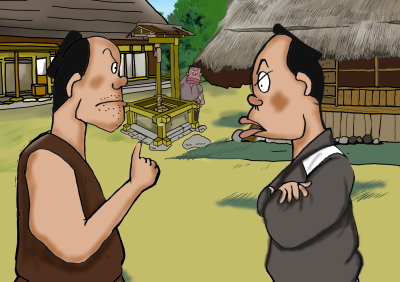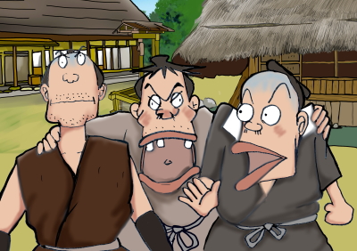 村男1) 「おい、甚六のやつ。 何だかヘンだと思わんか?
