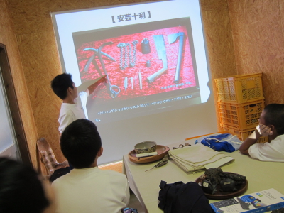 紙芝居という日本独特の演劇は、小さな空間であれば気持がダイレクトに伝わるうえ、状況に合わせて、シナリオや話し方が変えられるというメリットがあります。 十人規模のエコツーリズムとの相性が良く、前後に、クイズや資料を交えながら上演しています。