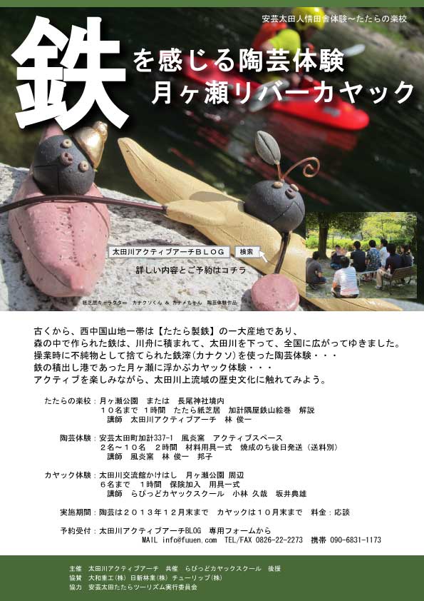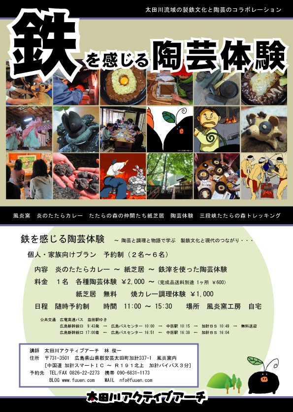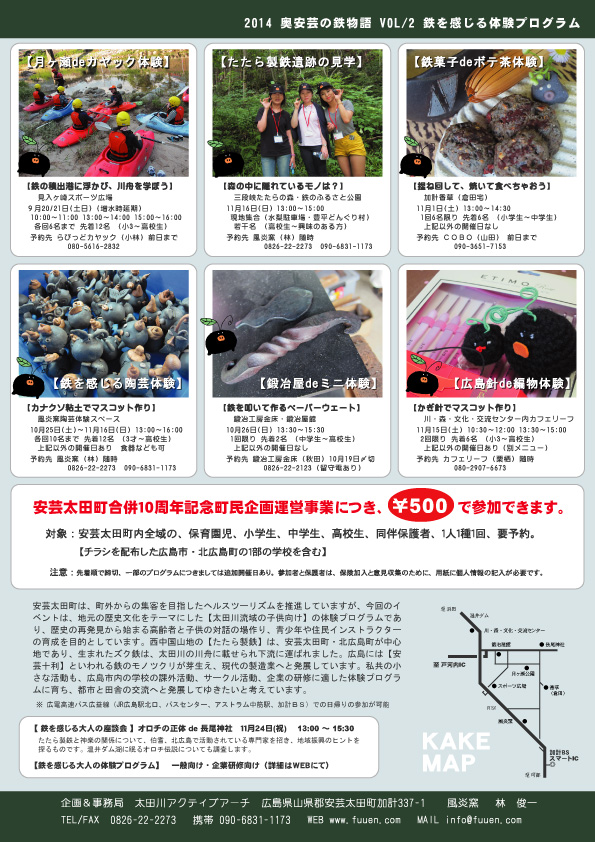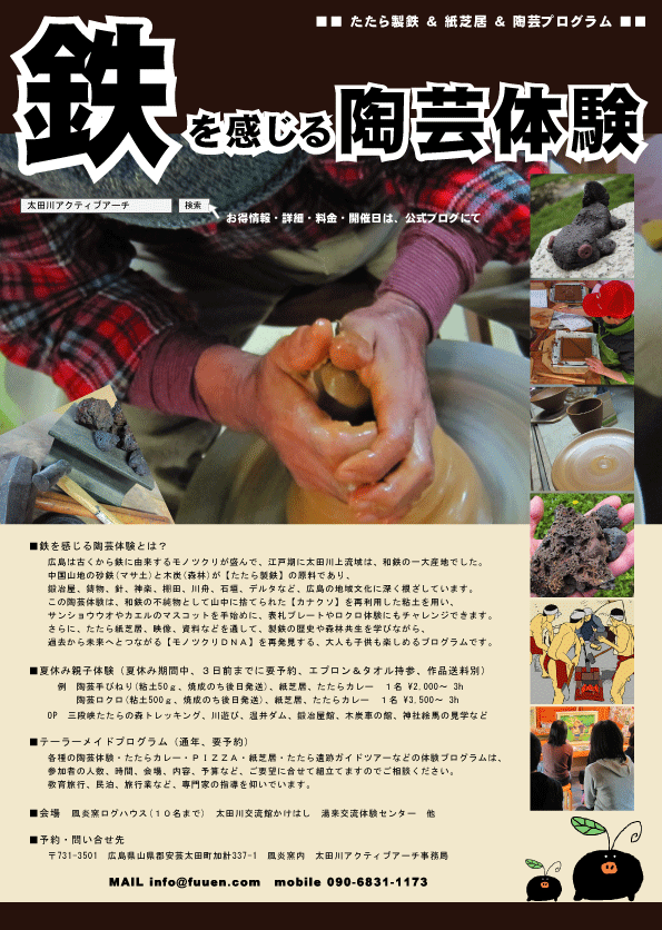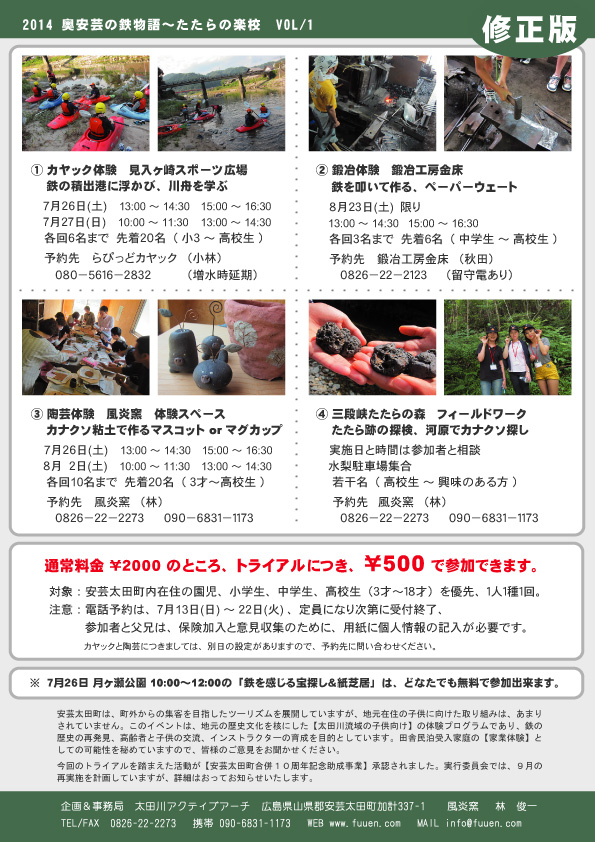 奥安芸の鉄物語〜たたらの楽校 鉄を感じる体験プログラム一覧表 (通常・2014/10現在)