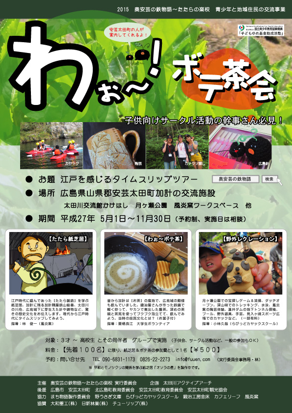 料金 : 1名 ¥1000 (紙芝居、ボテ茶体験、鉄やきいも、資料、記念品)