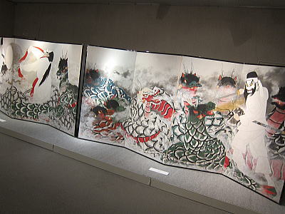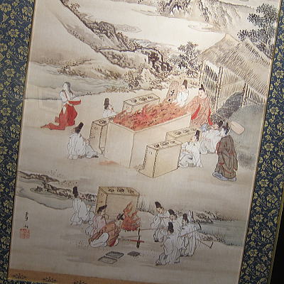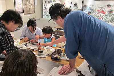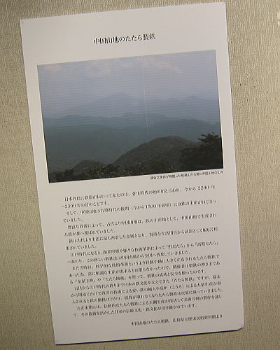 2013 「オロチの正体展〜鉄の物語」 に寄せて 加計隅屋鉄山絵巻 (広島県重要文化財) 江戸後期に、国内でも最大手の鉄山師に成長した加計隅屋が残した絵巻物で、 上巻(天地25cm、長さ6.4m)下巻(長さ8.5m)からなる。 たたら製鉄の作業工程として、 森林伐採、炭焼、たたら操業、ヒ出し、大鍛冶、勘定場、各種道具を写生しているが、 何処のたたら場を描いたのかは特定されていない。 作者の佐々木古仙斎は、江戸末期1794年生まれで、 芸北大暮の鍛冶屋の出とされる。 草稿本(下絵)として描かれたものだが、 それゆえの伸びやかな筆さばき、文章、労働者の所作の正確さへの評価が高い。 本画は原爆で焼失したものの、 日本独自のたたら製鉄の学術的な資料として、世界的にも大変貴重な絵画である。 ・・・・・・・・・・・・・・・・・・・・・・・・・・・・・・・・・・・・・・・・・・・・・・・・・・・・・・・・・・・・・・・・・ 1・操業風景 高殿(たたら吹屋)内部の暑くて過酷な操業風景。 マサ土で作った炉の中に、上から砂鉄と木炭を交互に投入し、 鞴からの送風によって激しく燃えているところ。 左右に設置された天秤鞴は大型であり、 番子が交代で踏むところが、カワリバンコの語源となる。 炉の下部から流れ出ているのが銑鉄(ズク)である。 村下は統括責任者であり、 炭を準備しているスミタキ、背後に金屋子が祀られている。 ・・・・・・・・・・・・・・・・・・・・・・・・・・・・・・・・・・・・・・・・・・・・・・・・・・・・・・・・・・・・・・・・・ 2・ヒ(ケラ)出し風景 操業を続けると炉のマサ土が融けて、だんだんと痩せてくる。 最後に炉を破壊したあと、中心部に生成されたヒを野外に引き出し、 鉄池に落として冷やしているところ。 池の水が沸騰するほどの熱量である。 屋根の排煙口や防火用水や梯子、ヒの下に敷くコロバシ木や鎖、 鉄屑を拾う子女、飼犬がいる。 ・・・・・・・・・・・・・・・・・・・・・・・・・・・・・・・・・・・・・・・・・・・・・・・・・・・・・・・・・・・・・・・・・ 3・大鍛冶風景 炉から出された銑鉄やヒを、割りながら選別したあと、 再加熱して、叩き鍛え、脱炭し、用途に合わせて品質を整えているところ。 リーダーの大工、右利き左利きを交えた4名の手子のチームワークが重要であり、 鉄棒にして出荷される。 加計まで馬で運ばれ、積出し港から川舟で太田川を下り、 さらに、瀬戸内海を大坂へと渡り、「山県割鉄」として全国に流通した。 ・・・・・・・・・・・・・・・・・・・・・・・・・・・・・・・・・・・・・・・・・・・・・・・・・・・・・・・・・・・・・・・・・ 砂鉄採取(カンナ流し) 砂鉄は、中国山地一帯のマサ土に約3%含有し、 水勢と比重を利用しながら選別したもので、大量の残土が川に流された。 それは、棚田や、広島デルタの生成と密接な関係がある。 太田川水系での砂鉄採取は、 洪水による氾濫防止のために、広島城の築城に合せて全面禁止された。 のち、砂鉄は石見などの山陰側から馬で運ばれ、 砂鉄の採取と運搬は、農家の農閑期の副業であった。 ・・・・・・・・・・・・・・・・・・・・・・・・・・・・・・・・・・・・・・・・・・・・・・・・・・・・・・・・・・・・・・・・・ 森林共生 1回の操業は3〜4昼夜の連続操業であり、 約15tの砂鉄と、約15tの木炭(1.5ha=サッカーコート2面分の森林)を消費し、 約3〜4tの鉄が生まれた。 森林の伐採は激しいものであったが、 一部を残したり、植林したり、10年単位でたたら場を移動したりと、保護に努めた。 また、たたら場には御神木があり、祈りの対象であった。 諸外国では、森林を枯渇させた事例が多く、製鉄は環境破壊としてみられるが、 実は、樹木が成長する過程で、多くの酸素を排出する。 中国山地では、循環的なエネルギー活用を行っていた。 ・・・・・・・・・・・・・・・・・・・・・・・・・・・・・・・・・・・・・・・・・・・・・・・・・・・・・・・・・・・・・・・・・ 安芸十り 広島は、日本でも最古級の弥生後期〜古墳時代の製鉄遺跡が発見されている。 (三原の小丸遺跡、千代田の京野遺跡、世羅のカナクロ谷遺跡) 中世には、かなりの数のたたら場があったが、 すでに地面からの湿気を防ぐ工夫があり、技術革新は先進的であった。 江戸期には、ジャストインによる材料供給、昼夜交代制、海上運搬など、 すでに現代的な企業経営がされていた。 たたら場の労働者は3〜4百人とされるが、 炭焼、砂鉄採取、運搬などを合せると数千人規模の産業であった。 明治初頭の加計隅屋の廃業で、太田川水系のたたら製鉄は姿を消したが、 原因は、安価な西洋鉄の大量流入や、良質な砂鉄の枯渇とされている。 のち、西洋の技術を導入した角炉が生まれ、 山中に放棄されていた鉄滓(カナクソ)を掘り出して、再利用した。 (大暮の山県製鉄、加計の帝国製鉄など) 角炉とは、耐火煉瓦によ