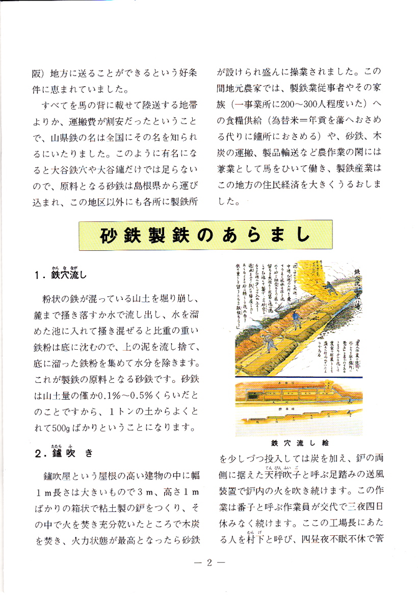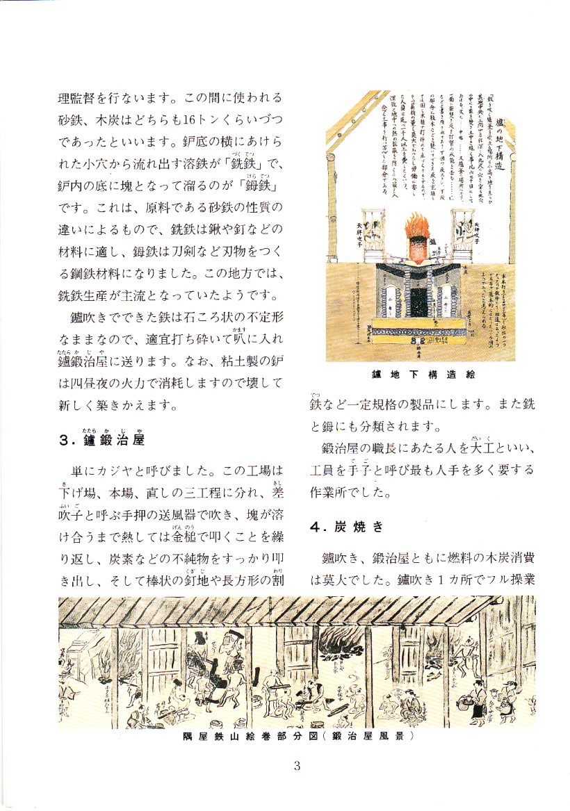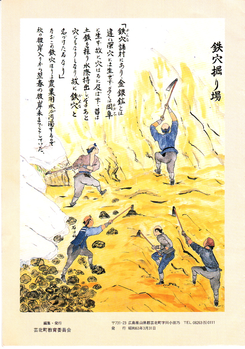 午前 紙芝居・三段峡たたら場絵巻 (江戸後期) 加計隅屋鉄山絵巻 クイズ 安芸十利 ボテ茶 紙芝居・オソラの星 (近代化)