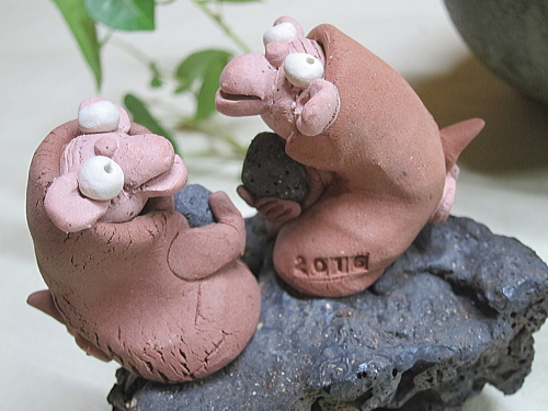 | ■内容量:マスコット1個 ポストカード1枚 ■サイズ: 約6cm ■特徴: ホンモノのたたらの鉄滓を使っています。 手びねりで作っていますので、微妙に表情が違います。 ※注意事項※ ●ワレモノにつき、大切に取り扱いください。 ●1つ1つ手作りのため、多少写真と異なる場合がございます。 |
