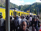 時代の流れとはいえ・・・ あるものが無くなるのは、沿線地域としては、淋しいものでがんす! 地域住民の存続運動も繰り広げられましたが、力尽き・・・ 第3セクターの話しがありますが、財政難で難しい・・・ これから、JRや民間のバス便が増発されますが・・・ それで過疎化は止まりまへん! 赤字となり、減便されるのも時間の問題・・・ 自治体の運営するフリーバスも、補助金のタレナガシで財政悪化・・・ 現在でも、老人の通院は・・・ 駅やバス停での待ち時間と、病院での待ち時間と、帰りの待ち時間・・・ 病院への往復で、残り少ない生存時間の多くが奪われており・・・ 病院で顔を合わせるのが、元気な証しのようでもある。 児童・生徒の通学にも多大な影響があり・・・ バス通学になりますと、定期運賃は大幅増となります。 60%が可部線通学で、定員割れの続く県立加計高校も、存続の危機にさらされます。 旧国鉄時代の廃止は、地域自治体との協議が必要で、一方的には出来ませんでした。 民営化時に、原則自由となり・・・ 法律改正後、始めての廃止問題は、全国の注目を集めました。 これから先、同じ状況にある過疎地の鉄道に波及する事は、必至であります。 小泉総理は民営化がスローガンですが・・・ 営利ばかり、競争ばかりでは忙しくなるばかりだす! 激しい競争原理は、ブチクソ貧富の差を加速させ・・・ それが本当の幸福なのでしょうか? 地方に出来る事は、地方にと申しますが・・・ ボンビー自治体が合併して、公務員や議員が多少リストラされて、何が変わるのでしょうか? 東京都内の小金井街道の、アカズの踏切り騒動を見ておりますと、 可部線との対極のようで、考えさせられるものだす! 都市に人口集中するのは、自然の摂理かもしれませんが・・・ 都市の過密化も、田舎の過疎化も、行き過ぎは大問題でがんす! 自由競争と、弱者への福祉が、バランス良く共存して欲しいものですね。 これから時代を動かすものは、 民営化よりも、合併よりも、複雑になりすぎた政治制度や官僚制度の疲弊の改革であり、 何よりも、銭と物欲に振りまわされている、現代人の暮らしの見直しでがんす! 可部線問題は、JAPANの歪の縮図であり、公共交通を単なる利潤の術と取るか、社会資本と取るかで、 方向は大きく変わります。 国やJRも、この問題の根深さに、軟化の姿勢も見せているようにも、聞いております。 廃止のち再生された路線もあるらしいですが、過疎地のボンビー自治体には、苦しい話ではあります。 世の中、確かに銭は大切ですが、ただそれだけでは悲しい・・・ 風炎陶器には値段があり・・・ このコラムを読むにも通信費が発生しておりますが・・・ 風炎オヤジといたしましては、銭を越えた領域で、幸福を感じて頂けますように、 さらなる精進を重ねるしかありまへん! 残念ながら、可部線は廃止されますが・・・ これからが過疎問題を掘り下げるスタートでもあり、引き続き論議される事でしょう。 話しは変わりますが・・・ 風炎オヤジは徒歩通学でしたので、可部線に乗った想い出よりも、見つめられた想い出が多いだす! 小学校時代は、可部線の沿線で、見晴らしがいい家に住んでいたのですが、 当時、オネショが大好きで、濡れ布団が2階の窓から屋根に干される事が、しばしば・・・ 列車の窓から遥かに見えたであろう、見事な世界地図・・・ 学校で友人からカラカワレ、噂になった事もあるだす! 今に思えば・・・ 繊細&ナイーブな性格は、この頃に養われたのかもしれまへん! 高校時代に越した家は、可部線の土手の下で・・・ 窓を開ければ、整理整頓の悪い、ワシの部屋が丸見え。 さらには、加計高校への通学歩道と、線路は、並行して走っておりました。 遅刻の常習犯でしたので、毎朝、ギリギリまで寝て、約2km、走って登校しておりますた。 途中、追い越されるジーゼルカー・・・ 「お〜い!遅刻するぞ〜」と、クラスメイトが車窓から手を振ったりして・・・ 目立つ存在。 今に思えば・・・ 大胆&中途半端な性格は、この頃に養われたのかもしれまへん! あれから四半世紀・・・ 立派な中年オヤジになってしまいました。 う〜ん! 人は誰も旅に出て、人は誰も故郷を振り返る・・・ ちょっぴり淋しくて振り返っても、そこには、ただ風が吹いているだけ・・・ 残された、鉄路と枕木と鉄橋と無人駅・・・ 今日も、ヘルニア予防のウォーキングをしながら、眺めております。 黄色いジーゼルカーの走る風景は、風炎オヤジの胸の奥で「のすたるぢや」へと昇華! 日本の過去と、未来と、時の流れの儚さが・・・ シミル。 PS 1 可部線にまつわる、心象風景など・・・ イロイロ・・・ ※冬の朝、始発の車窓から見えた、紺碧の空と朝焼けが混ざる、美しい瞬間! ※毛糸のマフラーと、手ぶくろと、暖房された車内・・・ 車窓の川面は白く凍り、湯気のような水蒸気! ※暑い夏は、蒸気機関車の窓を開け、風に吹かれ・・・ トンネルでは、モコモコの