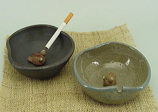 ![]() 気軽に使える大きさの 灰皿です。 中に、とっても、可愛い 出目金魚! ロクロで作って、 グニャと歪ませました。 ★黒、★白の二種類あります。 黒のフチは、光らせてあり 白は、ブルーです。 |