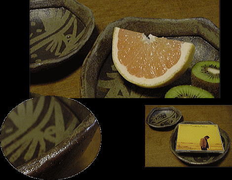 微妙に歪んだ5角形が自然な感じ。縁が分厚く、その割に軽く使いやすい。