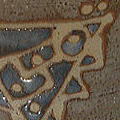 所々、焦げ色があり、白というよりもグレーで、いい味わいの白釉薬。 勢いのあるタッチで、白土で書いた魚は、スポイト書き。 薄いブルーの色付けが、爽やかな感じ・・・
