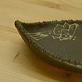 艶消しの黒釉薬に、グレーの内釉薬も、艶消し! 白土の魚紋! モノトーンの極みか・・・グッとくるものがあります。 |