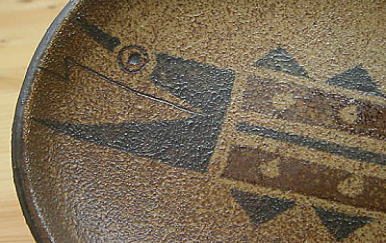 美味しそうな、ロザリオ・ビアンゴ! ![]() 手頃な大きさの魚紋楕円皿です! 菓子、惣菜、フルーツ・・・ 使いでがあります。 カレーライス等にも丁度いい大きさです。 ![]() 中心に、大口開けた魚が、一匹! 大胆で元気! 舌と眼は線彫りで、胴や尾ヒレは、ロウ抜き技法。 表面をザラつかせて、自然な灰釉薬で仕上げました。 焦げ色のある、独特のチリチリ感は、風炎窯の大きな特徴です。 ![]() タタラ板粘土で成形しておりますが、微妙に歪んでおります。 魚紋は大胆で勢いがありますが、よく見ると繊細で、コダワッテいる。 風炎窯らしい、味とデザインですね!