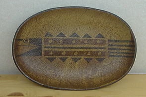 | B−054 魚紋楕円皿 ¥5,000 size 径260×190 高37 画像 少し光っている |