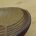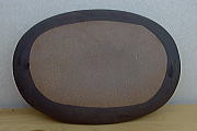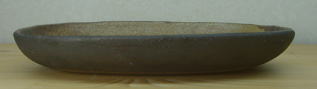側面と縁は艶消しの黒い釉薬で塗り分けてあり、 平らな底は、薄茶色の土の素材の色です。
