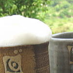 陶器のビールカップはクリーミィーな泡立ちでアワワワワ・・・