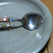 縁の立ち上がりが深めで、スプーンに沿った角度であるという事・・・