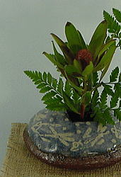 ![]() よく見ると、微妙に歪んで、何ともいえません! 花を活けないと寂しい気もしますが これくらいのほうが、花が生きますのです。 口を長四角にカットしてます。 花を活ける時には剣山が必要です。 |