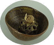 ![]() 小鉢と土剣山のセットで、小さくてかわいい花生です。 小鉢の内側は、渋いグリーン色で 所々に小さな、くし目がある。 外は茶色。 ふちを2ヶ所、切って張り合わせて、楕円になっています。 全体に渋い雰囲気ですから、野の花がお似合い! きれいな花ね。 かわいいね。 ふと気が付くと、草の影から 小さなフクロウ、こんにちわ! う〜ん ニクイ演出だすな! |