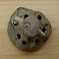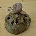 今回の作品は、大きさにバラツキがあります。 小さなカタツムリは、アップ画像ですので、実際の体長は2cmくらいと可愛い! 赤土と白土で、手ひねりでつくりました・・・ 風炎オヤジの大きな手で・・・ 花器も、ドーナツ型にロクロ引きした粘土を、大胆にカット! 指跡が残っております。 両端に穴を空けまして、千切って、デザインのポイントにしました。