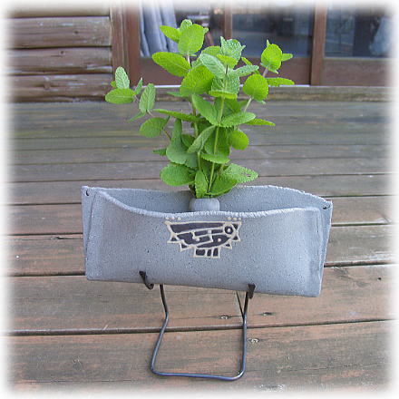 ![]() 掛け花生と金属スタンドのコラボ! 壁に掛けても置いてもOK! 陶器の御影石のような肌合に、 ひょうきんな魚のデザインがお洒落な感じ・・・ 金属部分はバーナーで焼いて、トンカチで叩いて、さらに腐食させていますので、 使い込んだ風合い・・・ 貴方ならどう使う?