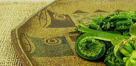 元気に風に吹かれた、こいのぼり! 板づくりで、径、約25cmあります。 家族の大盛りオカズや、 菓子皿にいかが! 渋い灰釉薬に、コゲ色があり、 風炎らしい色合いですね! 3匹重ねたパターンが面白い。 |