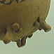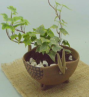 釉薬は掛かっていませんので、土だけのザラツイタ感触だす! 白土と、赤土と、マンガン釉で、デザインしました! 山羊のような、鹿のような・・・ でも一応、山羊です。 底に穴があいてますので、水やりされる場合は、トレー等で、工夫してください。 |