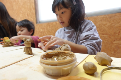 お子さまの「はじめて」と「昭和レトロ」が楽しくコラボしました。まず、家族みんなで一緒になって、お子様向けの小皿やキャラクター人形作りをお楽しみください。焼成1点。様子を見ながら、「電動ろくろお触り体験」「五右衛門風呂ゲーム」「ホットドック調理体験」「川遊び体験」を提供します。