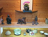 この度、中国新聞取材の展示風景の総天然色画像に、 風炎工房のギャラリーが選ばれ、風炎オヤジの巨漢が大きく、その面積を取り、 ムサクルシイ事でお詫び申し上げます。 なお、頭部と首元にあります地肌は、突発性の円形脱毛症ではなく、 天井からブラ下がっております「マンボウのモビール」でありますので、 ここにお知らせ致します。 |
